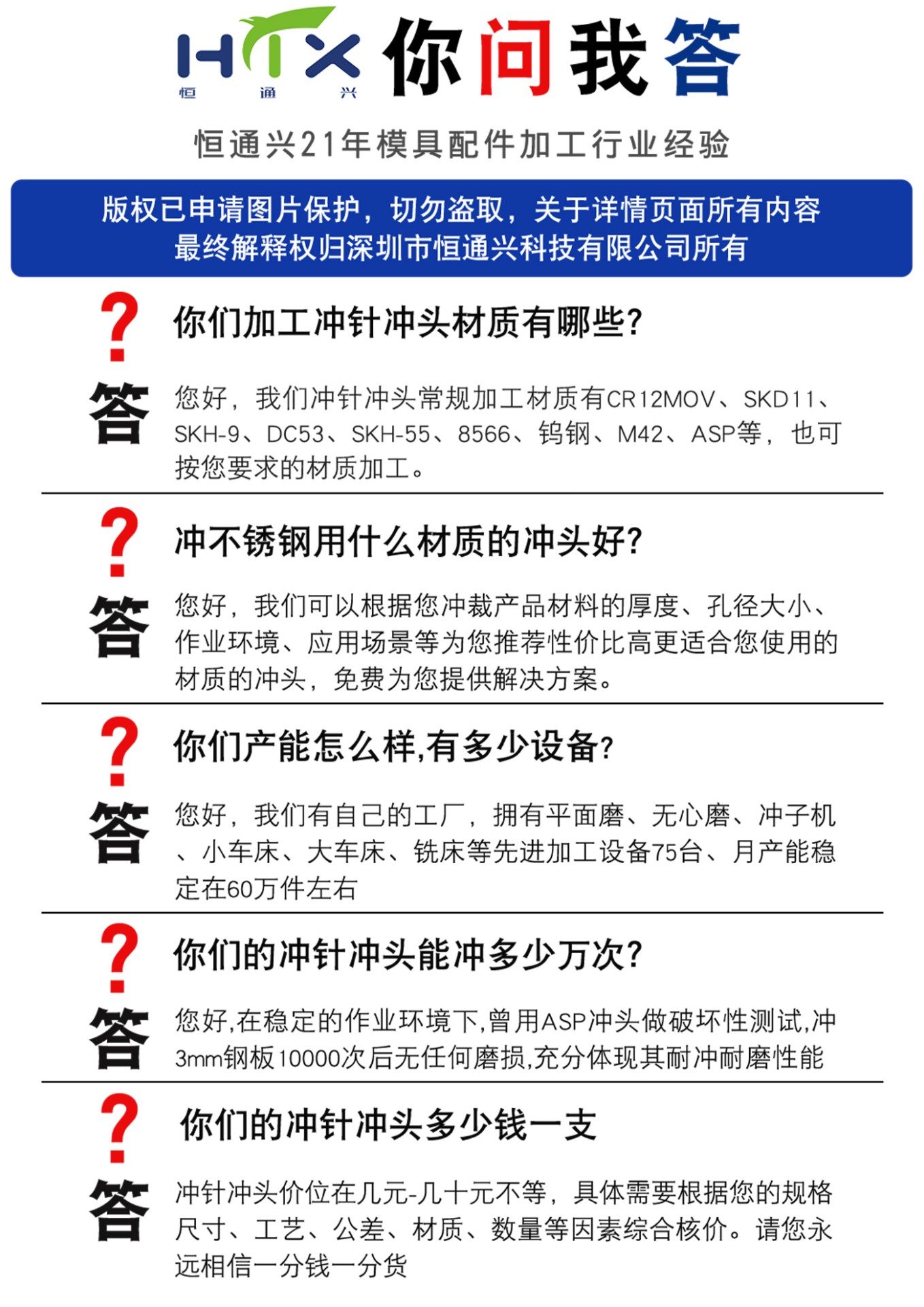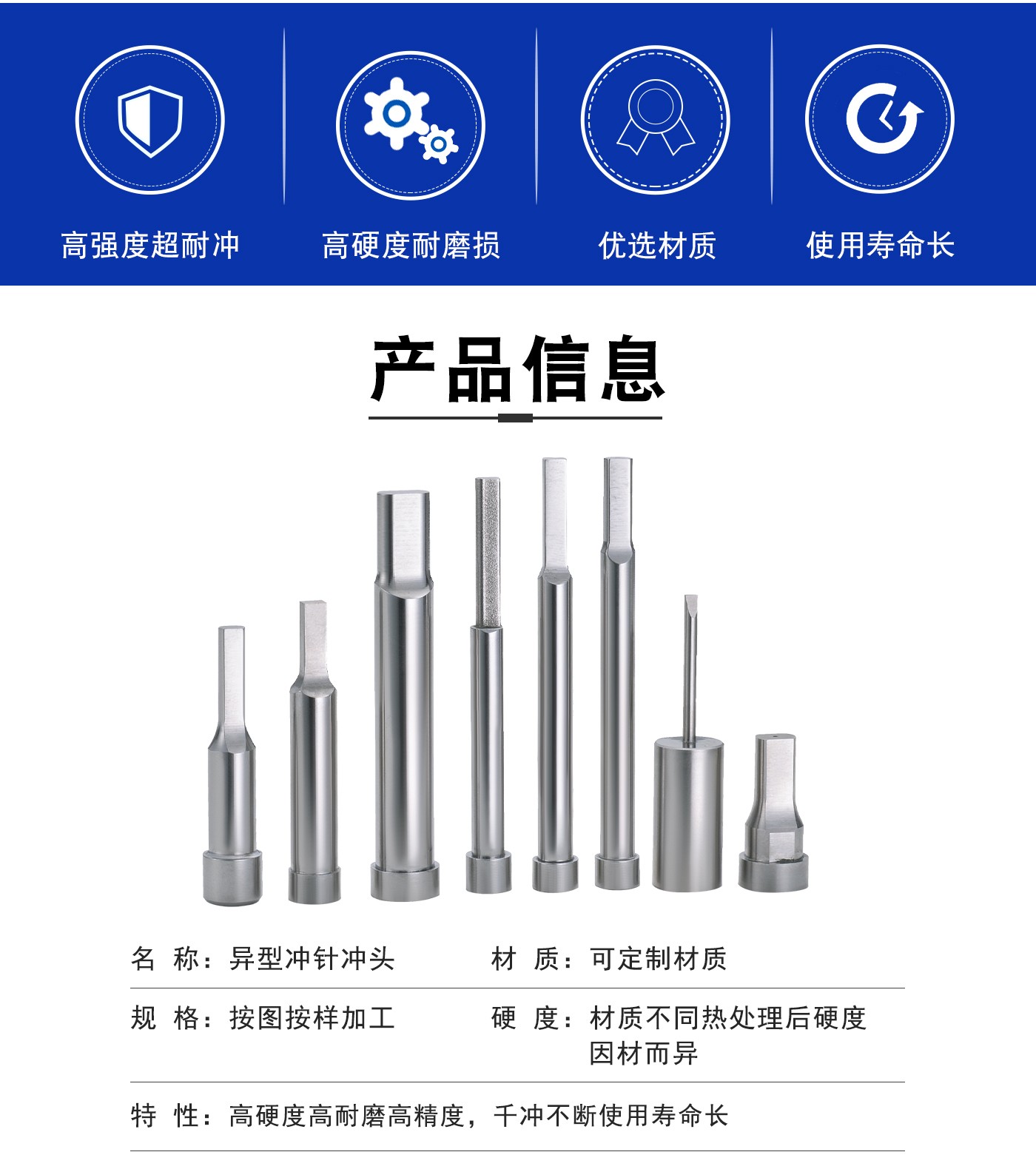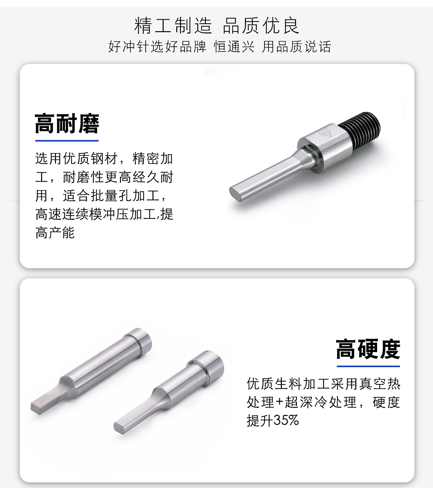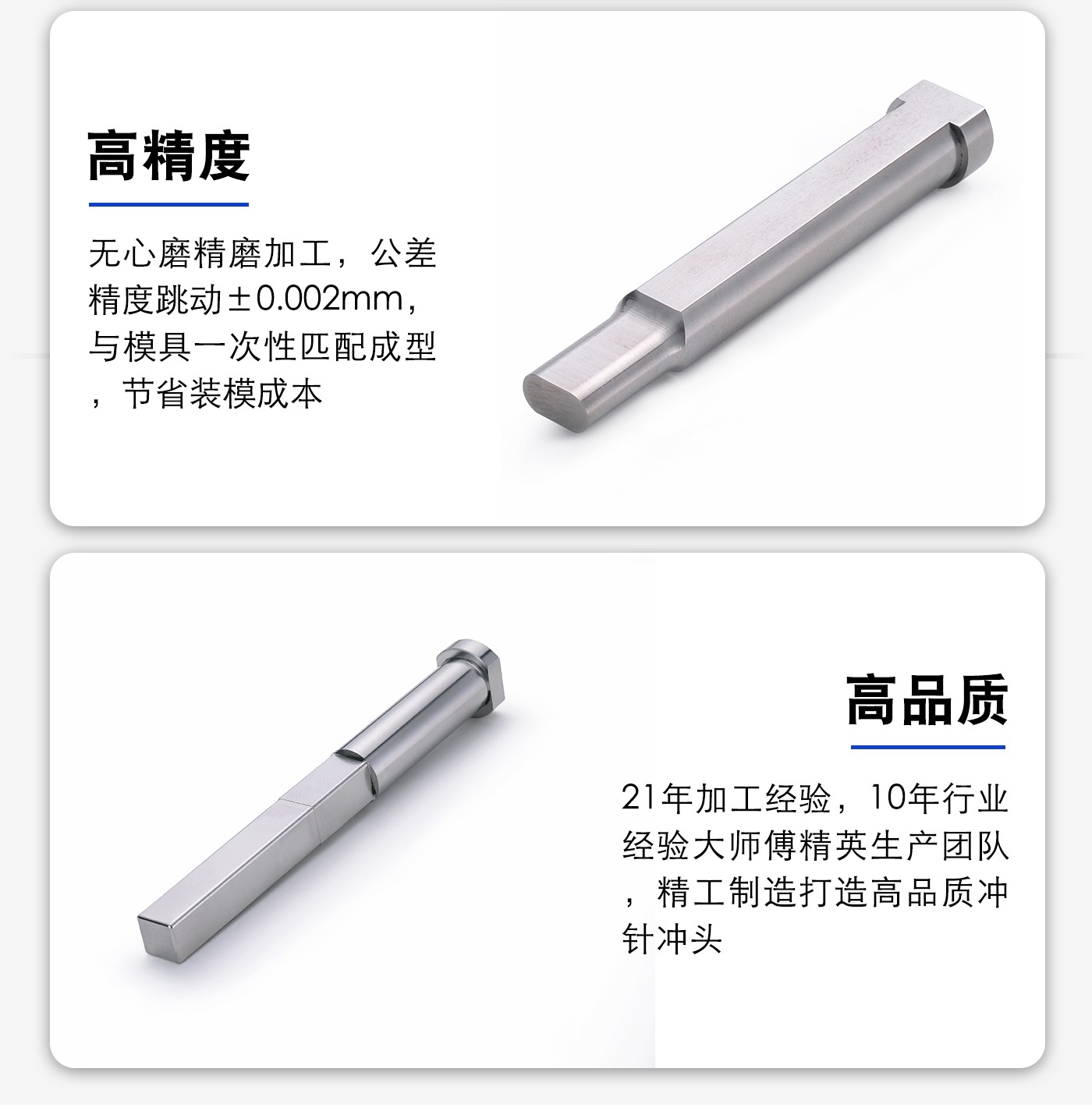 深圳市恒通興科技專業(yè)21年加工定制異形沖針等各種非標(biāo)沖針沖頭,產(chǎn)品材質(zhì)正宗,公差精度±0.002mm,硬度高耐磨損,使用壽命強(qiáng)3倍。