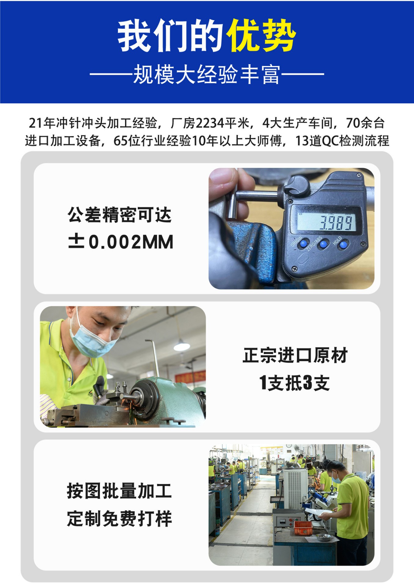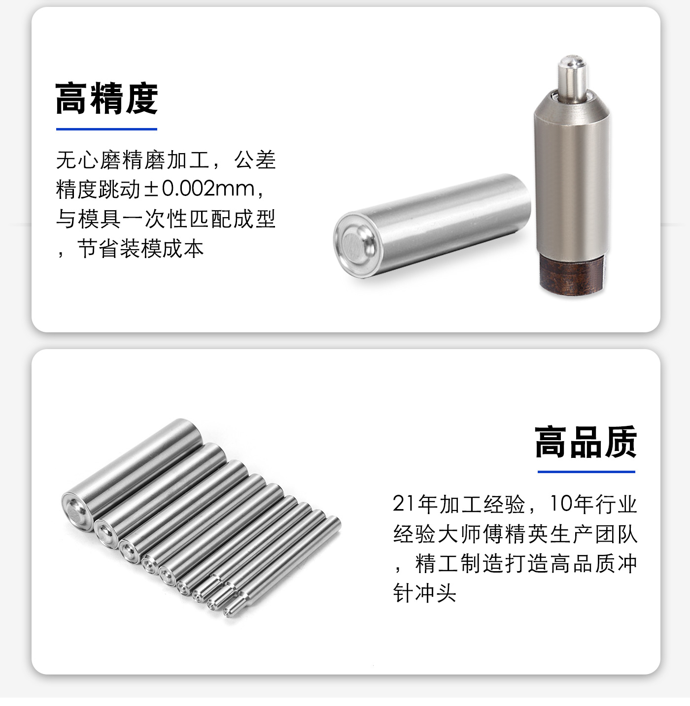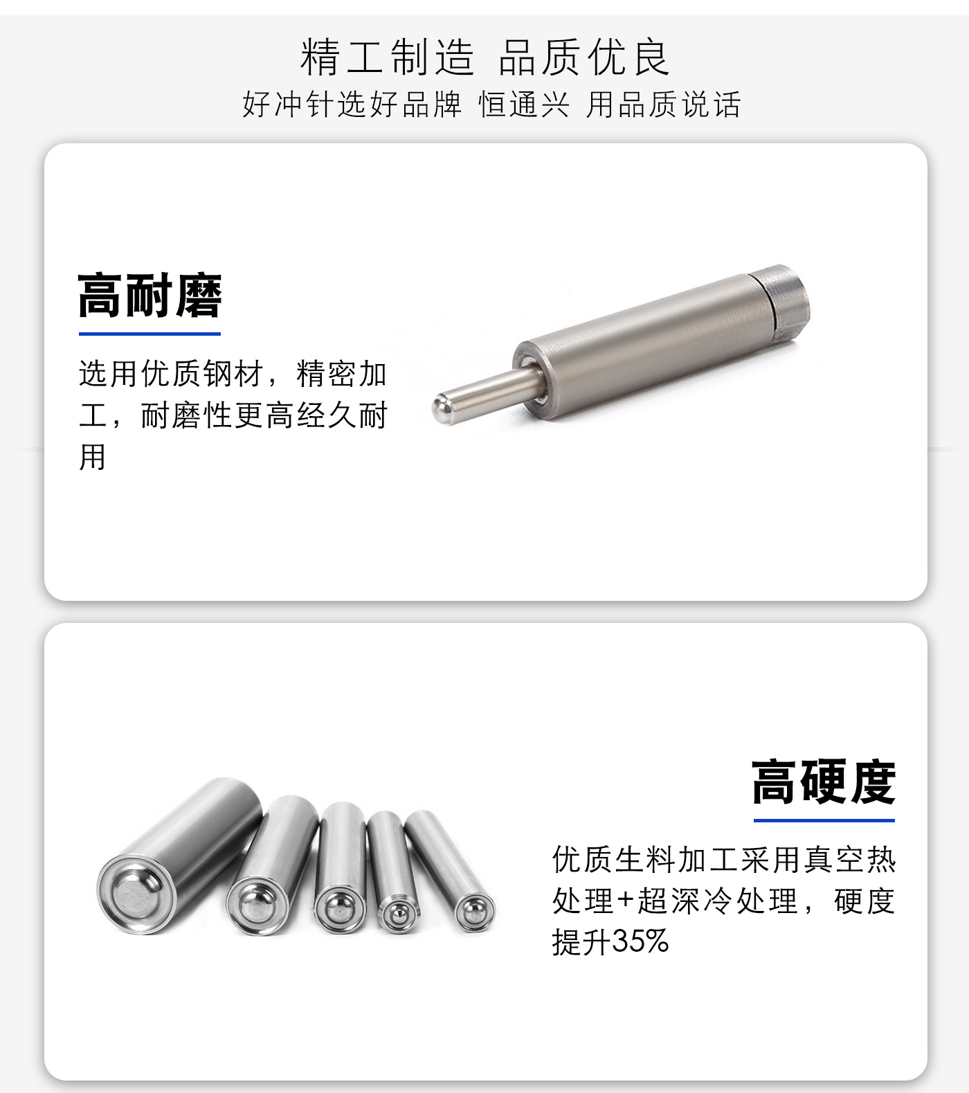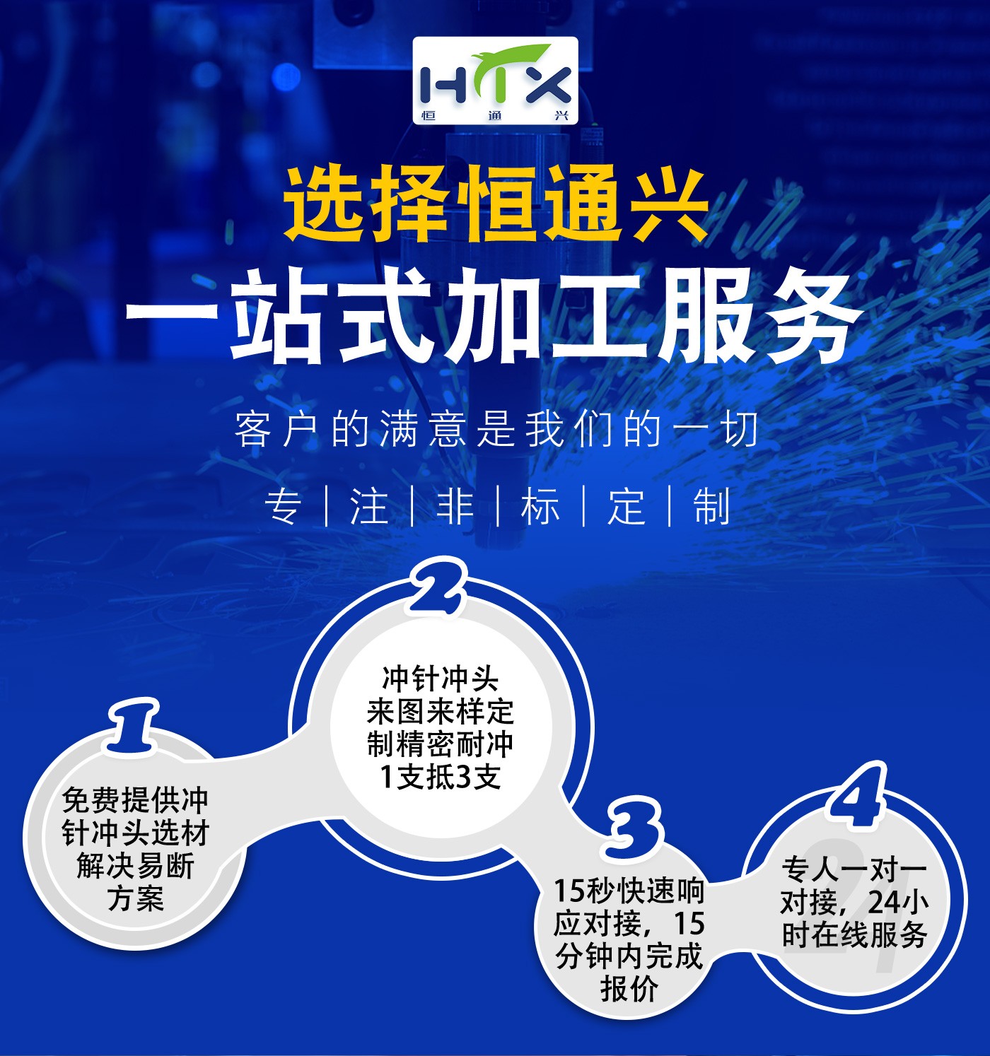 深圳市恒通興科技專業(yè)21年加工定制抽芽沖針等各種五金沖壓沖針沖頭,產(chǎn)品材質(zhì)正宗,公差精度±0.002mm,硬度高耐磨損。