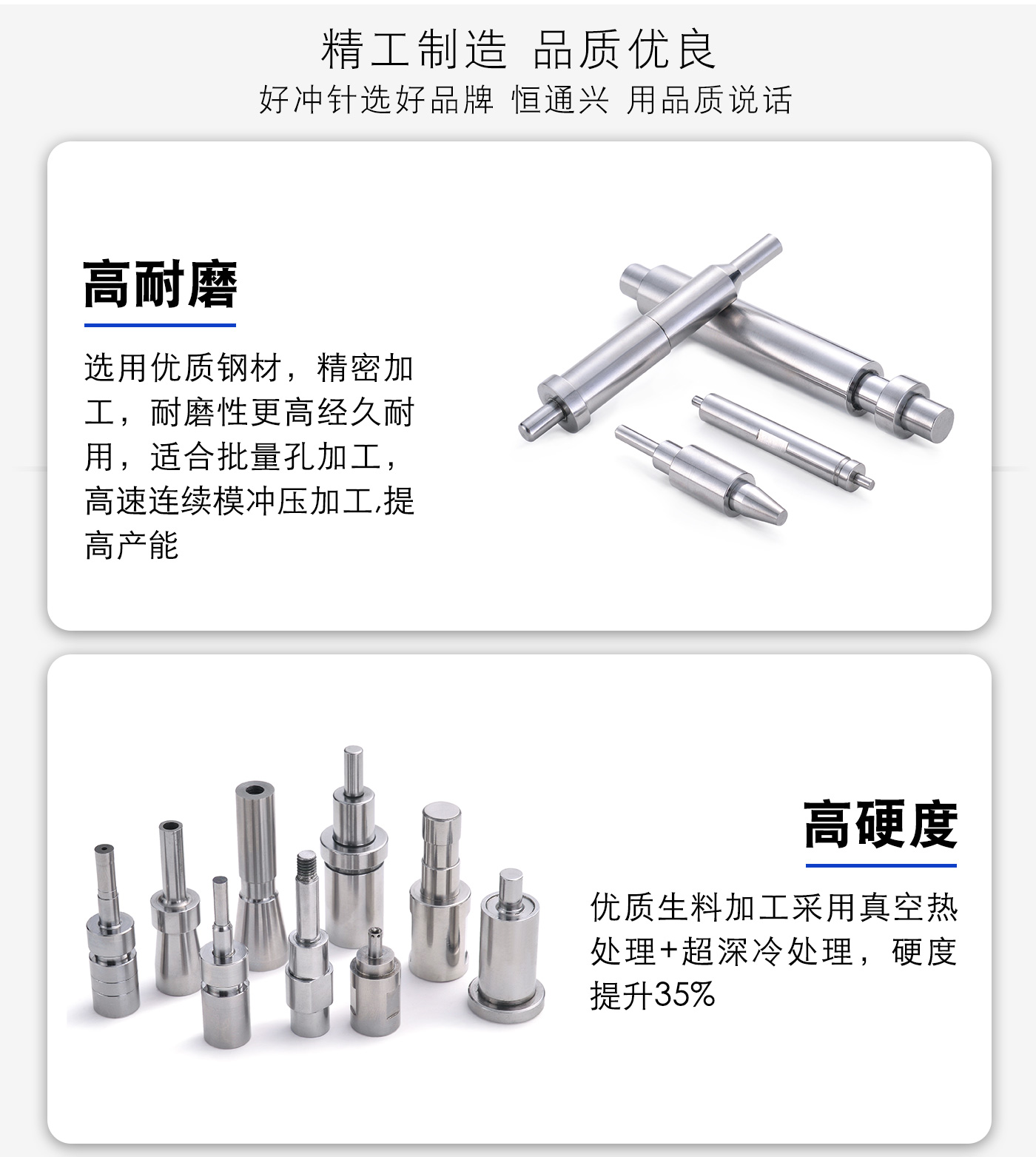 深圳市恒通興科技專業(yè)21年加工定制耐磨沖針等各種材質(zhì)沖針沖頭,源頭廠家直銷價(jià)格實(shí)惠,耐沖耐磨,公差精密,品質(zhì)卓越。