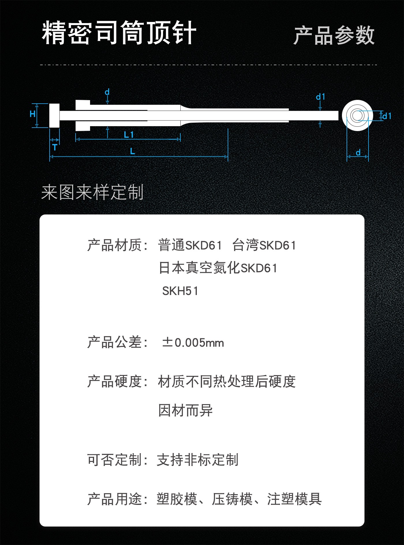 恒通興專業加工精密司筒頂針,21年塑膠模具配件頂針加工經驗,優質選材,公差精密,產品耐高溫同心度高經久耐用,標準規格型號齊全,現貨10萬庫存,非標來圖來樣加工定制。