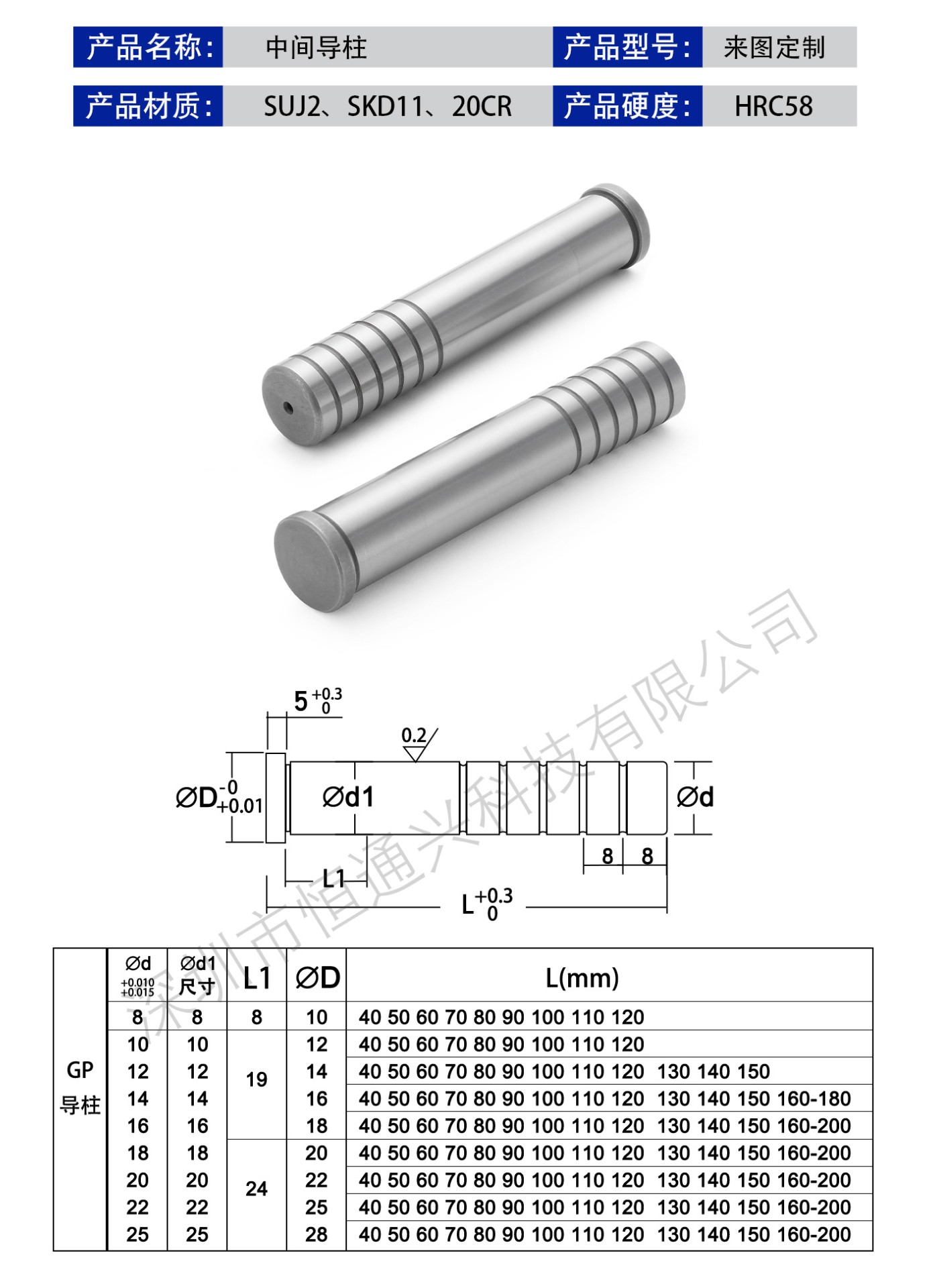 恒通興21年專注導柱導套生產加工,中間導柱標準現貨規格齊全,海量庫存,非標可按圖定制,一站加工服務,讓您省錢省心。
