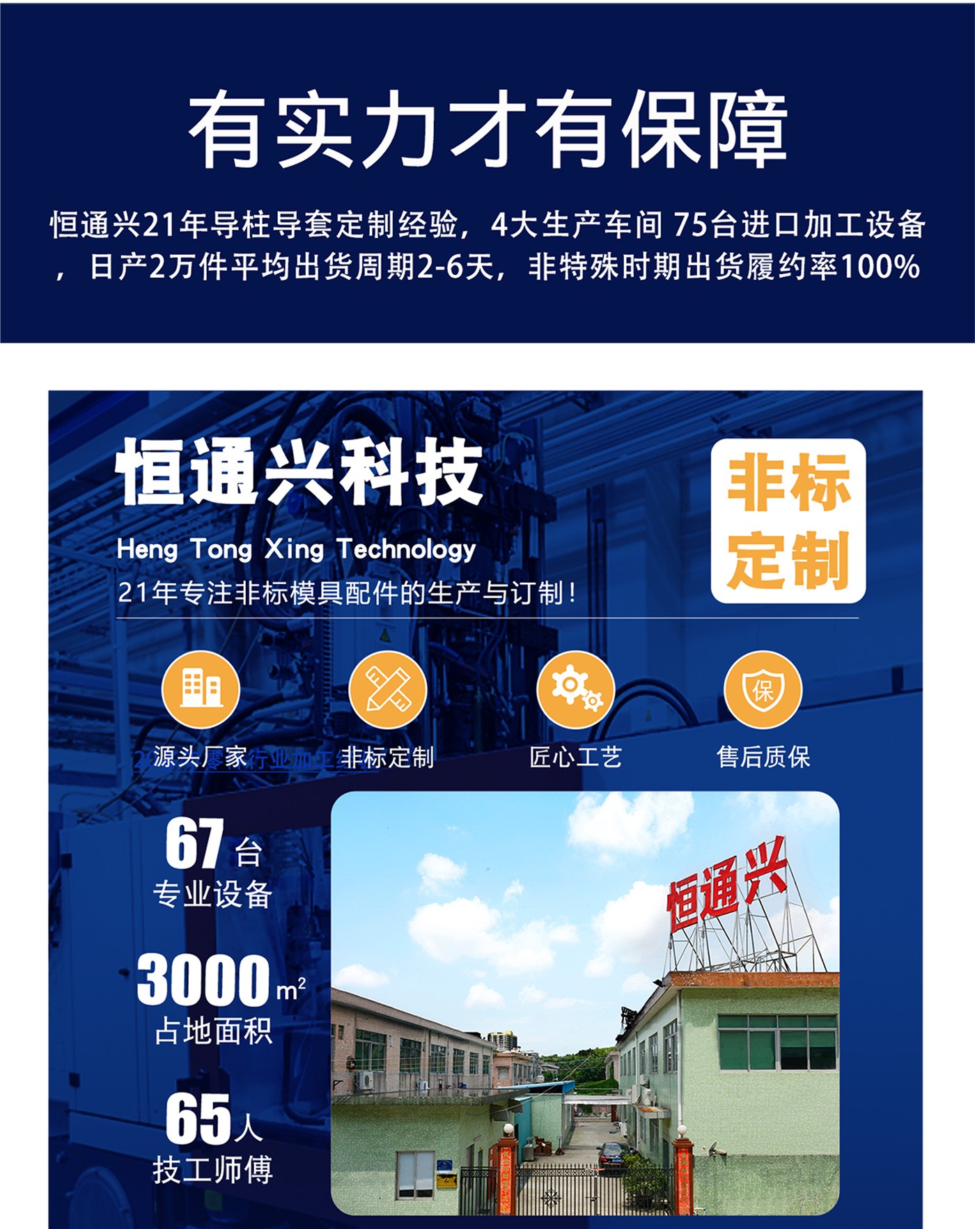 恒通興21年專注導(dǎo)柱導(dǎo)套生產(chǎn)加工,直滾珠導(dǎo)套標(biāo)準(zhǔn)現(xiàn)貨規(guī)格齊全,海量庫存,非標(biāo)可按圖定制,一站加工服務(wù),讓您省錢省心。
