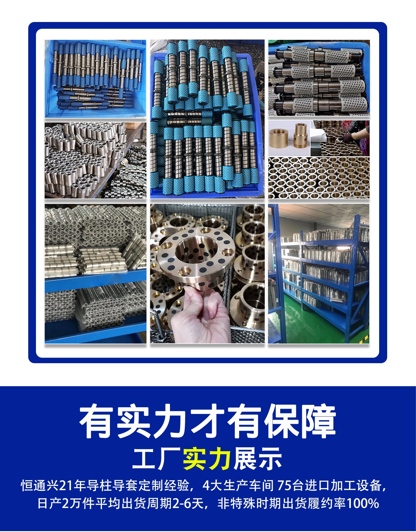 恒通興21年專注導柱導套生產加工,標準現貨導套規格齊全,海量庫存,非標導套定制加工,一站加工服務,讓您省錢省心。